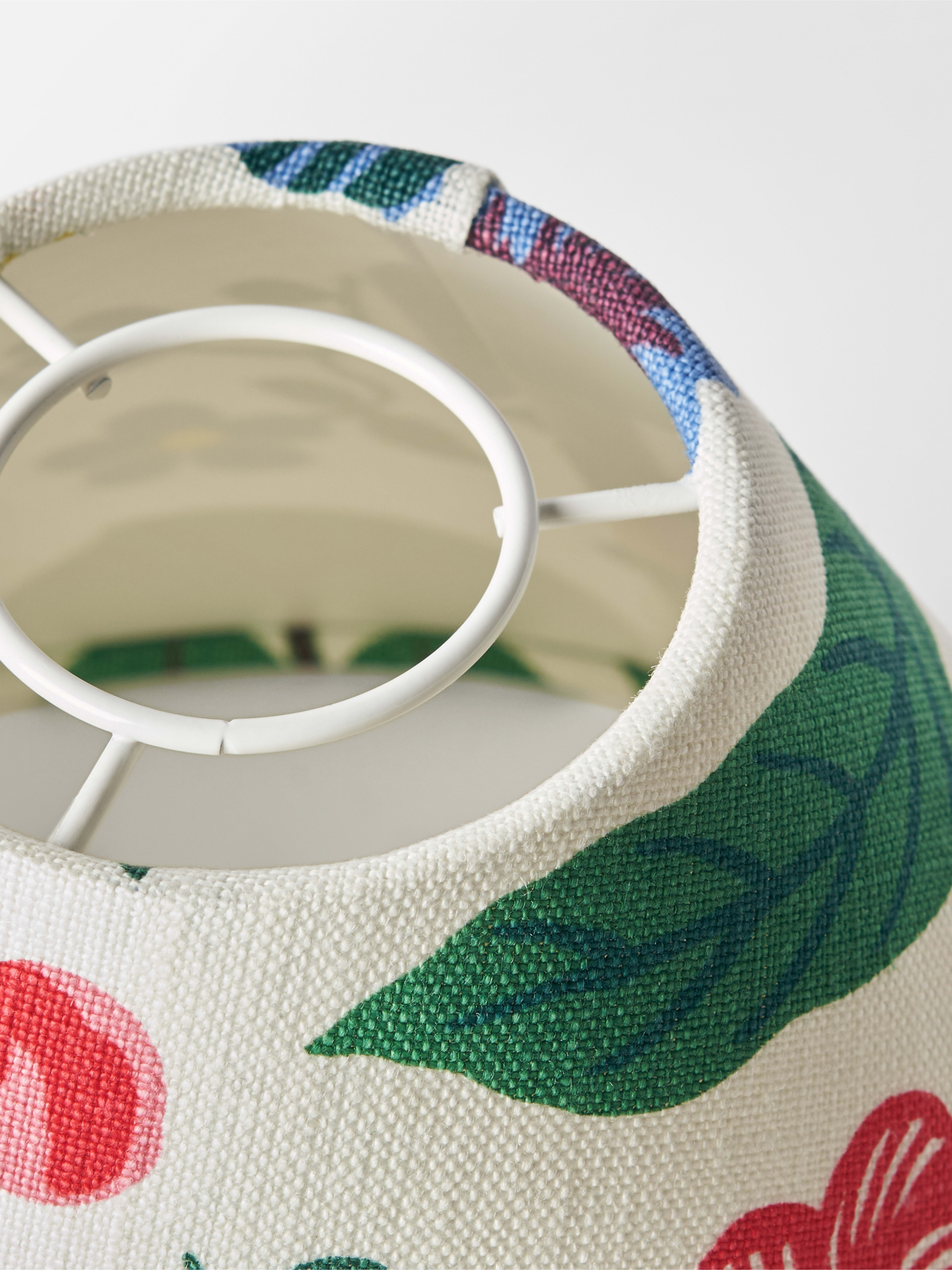 Formgivaren Josef Frank skapade en unik lampskärm till varje modell av sina lampor. Ursprungligen var alla i vit textil men senare har Svenskt Tenn tagit fram lampskärmar i Josef Franks många olika textilier och andra färgstarka och blomstrande mönster. Flera av Svenskt Tenns lampskärmar finns även i enfärgad textil. Att variera skärmen på din lampa är ett enkelt sätt att skapa ett nytt och personligt uttryck.